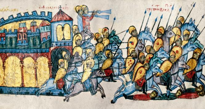 Armia bizantyńska swój rodowód wywodziła bezpośrednio z wojskowości rzymskiej. Machina wojenna przechodziła kolejne szczeble ewolucji od legionów do średniowiecznej armii, ponosząc dotkliwe klęski i odnosząc niespodziewane zwycięstwa.