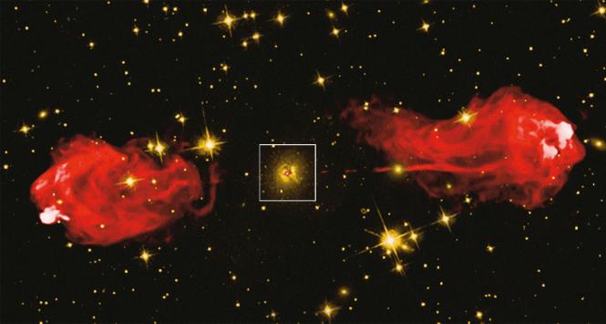 A dokładnie rzecz biorąc – jest to kwazar, który leży w odległości 12,8 miliarda lat świetlnych od nas. Powstał, gdy cały Wszechświat liczył zaledwie 900 milionów lat.