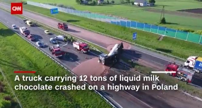 Polska przewijała się od wczoraj przez media całego świata. Gazety, telewizje, portale pokazywały wywrotkę cysterny z płynną czekoladą i prześcigały się w żartach, lepszych lub gorszych.
