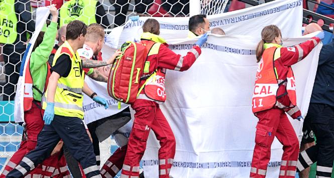 Pod koniec pierwszej połowy meczu Dania–Finlandia Christian Eriksen, jeden z najbardziej znanych duńskich piłkarzy, nagle upadł na murawę. Był reanimowany. Po kilkudziesięciu minutach przyszły pierwsze nieoficjalne informacje, że zawodnik odzyskał przytomność.