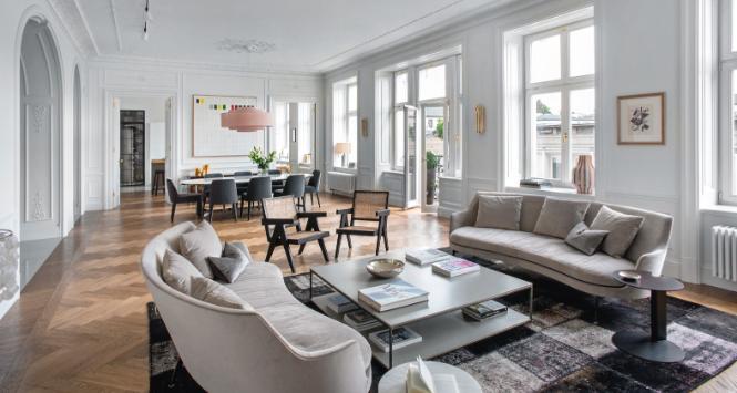 Sztukaterie, portale i współczesny design razem. Pod parkietem w jodełkę – system rekuperacji. W warszawskiej kamienicy z początku XX wieku w stylowej scenerii mieszka nowoczesność.