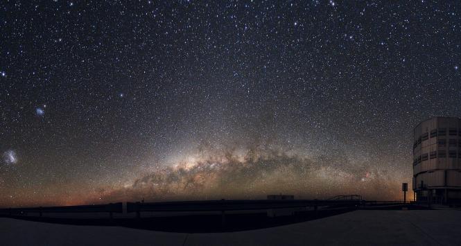 Wielki Obłok Magellana - nieregularna i karłowata galaktyka nieba południowego, orbitująca wokół naszej Mlecznej Drogi - znajduje się w odległości 162 980 lat swietlnych. Wyliczył tak międzynarodowy zespół astronomów, korzystający z kilku teleskopów naziemnych - m in. na Hawajach i w Chile. Pomiar dystansu charakteryzuje się dokładnością do 2 proc. Dotychczas sądzono, że Wielki Obłok Magellana leży dalej - ok 200 tys lat świetlnych. Tak dokładny pomiar ma duże znaczenie dla badaczy nieba, gdyż może być wykorzystywany jako stała służąca do wyznaczania innych odległości kosmicznych oraz tempa rozszerzania się naszego lokalnego Wszechświata. Poza tym, że galaktyka ta jest bardzo blisko ma ona też dodatkowe walory. Obserwuje się w niej bardzo nasilone procesy gwiazdotwórcze, które pozwalają uczonym sledzić zjawisko narodzin i ewolucji gwiezdnych populacji. Oto Wielki Obłok Magellana.