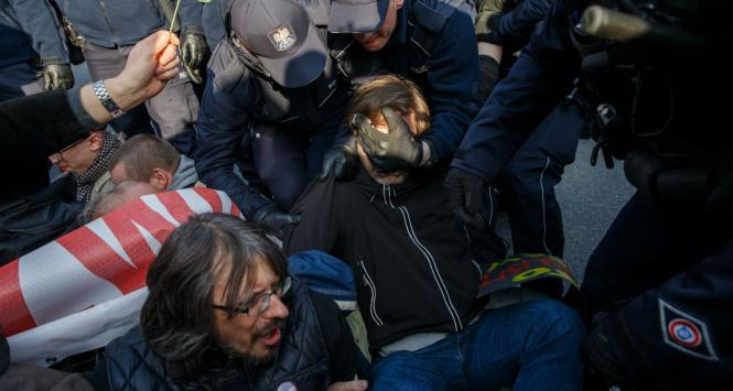 Grupa osób miała odwagę blokować marsz ONR. Zatrzymała ich policja