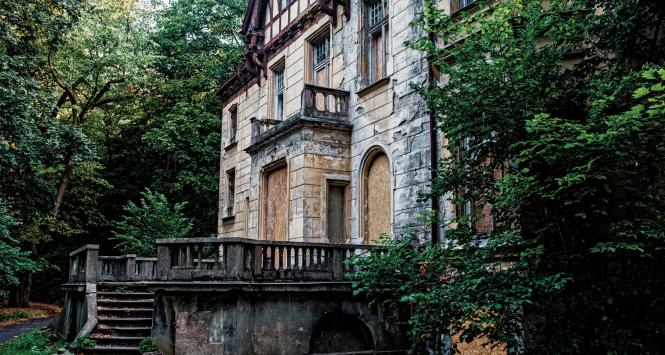 Niegdyś cuda architektury, dziś dwa niszczejące pałace. Tak nie pasują do otoczenia, że kiedy wychodzi się z lasu na polanę, na której stoją, wydają się przywidzeniem. Zachowały w sobie pamięć o śmiertelnej chorobie i pewnej męskiej miłości.