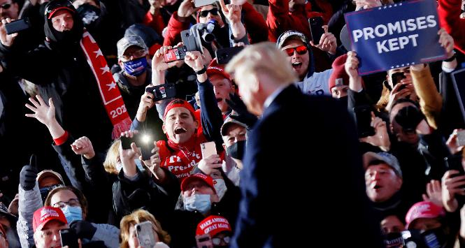 Donald Trump mówi o pandemii lekceważąco i twierdzi, że Biden proponuje lockdown. Na zdjęciach z wieców prezydenta widać, że wielu ludzi ignoruje zalecenia, żeby nosić maseczki i zachowywać dystans.