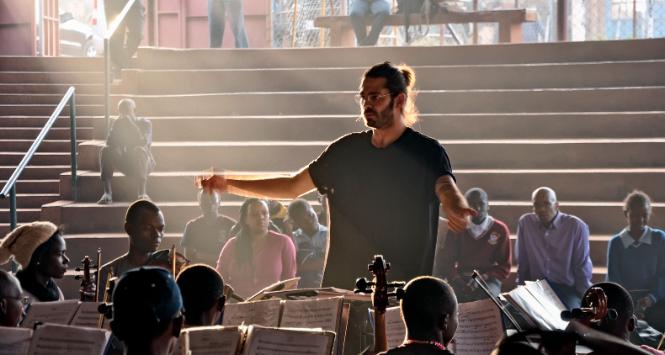 Próby Ghetto Classics odbywają się 100 metrów od wysypiska śmieci. Słychać wrzawę dzieciarni, która zbiegła się, żeby z bliska obejrzeć przystojnego mzungu z Polski. Orkiestra ćwiczy z Radzimirem Dębskim jego „Historię hip-hopu”.