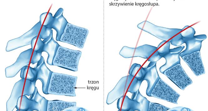 Często nazywa się ją wadą postawy, ale jest to już choroba, w której kręgosłup wygina się do boku powyżej 10 stopni.