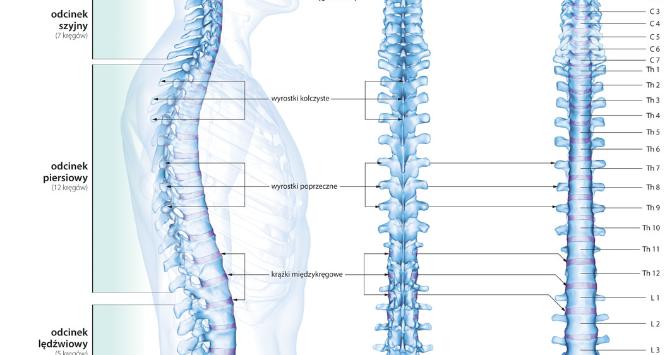 Kręgosłup składa się z kości zwanych kręgami, które łącząc się ze sobą, tworzą elastyczny słup będący osią tułowia.