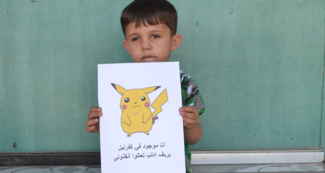 Syryjskie dzieci ze zdjęciami Pokémonów przypominają światu o wojnie
