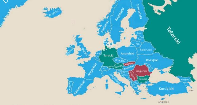 Mapa drugich języków: polski w Wielkiej Brytanii, turecki w Niemczech i... białoruski na Białorusi