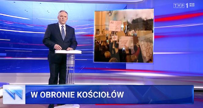 Narrację „Wiadomości” można streścić tak: panoszy się lewacka agresja, za którą stoją politycy. Zagrożone są kościoły, których trzeba bronić, a opozycja warcholi w Sejmie i na ulicach.