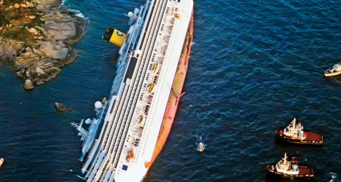 Po 20 miesiącach spoczywania na dnie na prawej burcie wycieczkowiec Costa Concordia został ustawiony do pionu i osadzony na sztucznym dnie.