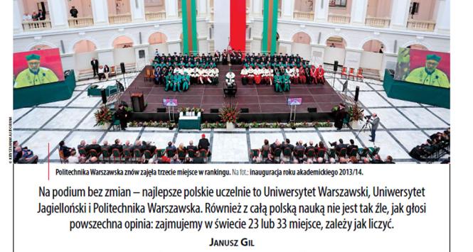Na podium bez zmian – najlepsze polskie uczelnie to Uniwersytet Warszawski, Uniwersytet Jagielloński i Politechnika Warszawska. Również z całą polską nauką nie jest tak źle, jak głosi powszechna opinia: zajmujemy w świecie 23 lub 33 miejsce, zależy jak liczyć.