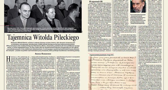 W artykule „Tajemnica Witolda Pileckiego” (POLITYKA 20) prof. Andrzej Romanowski (literaturoznawca, pracownik Instytutu Historii PAN) zwrócił uwagę na sprzeczności między dokumentami opublikowanymi przez Instytut Pamięci Narodowej w obszernym albumie poświęconym postaci bohaterskiego Rotmistrza a zawartą w tym albumie interpretacją.