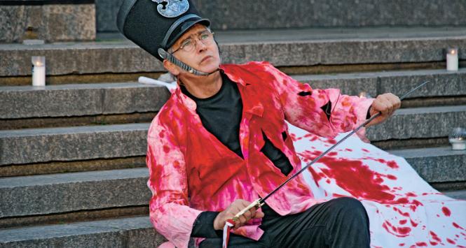 Olgierd Łukaszewicz w 15 miesięcy odwiedził prawie 70 miast i miasteczek. Pomazał czerwoną farbą wiele koszul, by przypomnieć historię i pokazać, do czego prowadzi nacjonalizm.