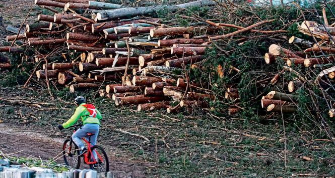 Kto ostatnio przejeżdża przez Mazury, ten jest świadkiem tragedii: na skraju szos leżą resztki setek pni wspaniałych drzew. Wszędzie pracują brygady drwali. Okoliczni mieszkańcy błyskawicznie zgarniają do zagród ciężkie bierwiona jako drewno na opał.