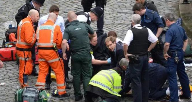 Zdjęcie Tobiasa Ellwooda, który udzielał pierwszej pomocy rannemu policjantowi, obiegło brytyjskie media.