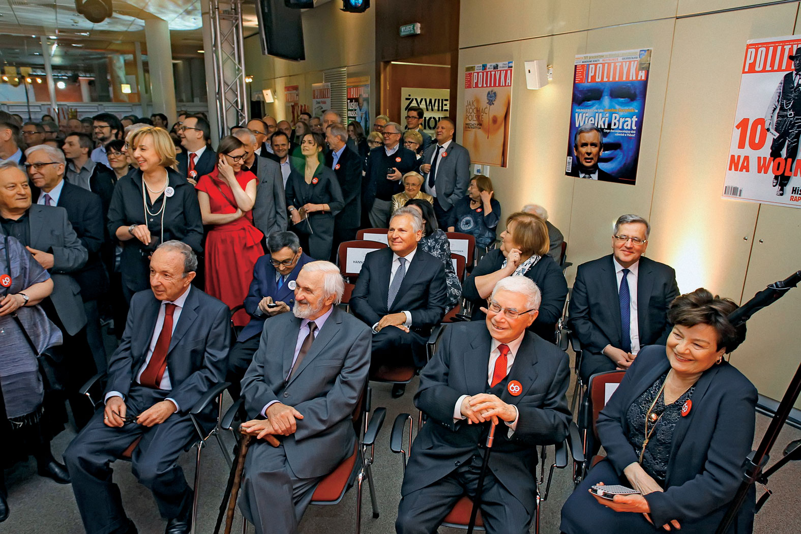 W piątkowy wieczór podjęliśmy naszych przyjaciół ze świata kultury, nauki, mediów i polityki. Wśród wielu znamienitych gości nie zabrakło byłych prezydentów Aleksandra Kwaśniewskiego i Bronisława Komorowskiego. Jak zauważył redaktor naczelny POLITYKI Jerzy Baczyński, prezydenci byli z nami od świtu do nocy, ponieważ już z samego rana odwiedzili siedzibę POLITYKI – skąd nadawana była część programów Radia TOK FM, w tym piątkowa audycja Jacka Żakowskiego, w której uczestniczyli. Oprócz byłych głów państwa gościliśmy byłych premierów, marszałków, posłów, senatorów, sędziów, ambasadorów, generałów, prezesów, profesorów, redaktorów, artystów, księży… A także pracowników i byłych członków naszego wydawnictwa – tych trzech pokoleń, które przewinęły się przez naszą redakcję.