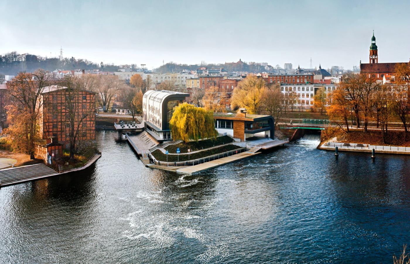 Nawiasem mówiąc, w Bydgoszczy spektakularne obiekty architektoniczne powstają nieczęsto, ale te, które już są realizowane, budzą wiele emocji. Przykład najsłynniejszy to oczywiście gmach Opera Nova, którego pierwszy projekt w stylu późnego modernizmu został przyjęty do realizacji w 1961 r., budowę rozpoczęto w 1973, a zakończono w 2006 r., czyli po 45 latach! A zatem ta wyraźna dominanta w centrum miasta już w momencie otwarcia była zabytkiem. Przykład drugi to siedziba BRE Banku, zwana też nowymi spichrzami (2006 r.), duetu Andrzej Bulanda i Włodzimierz Mucha, a uznana za jedną z najciekawszych realizacji w polskiej architekturze po 2000 r. Teraz dołączyła marina.