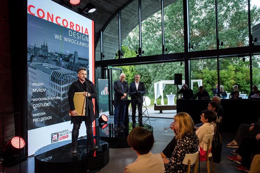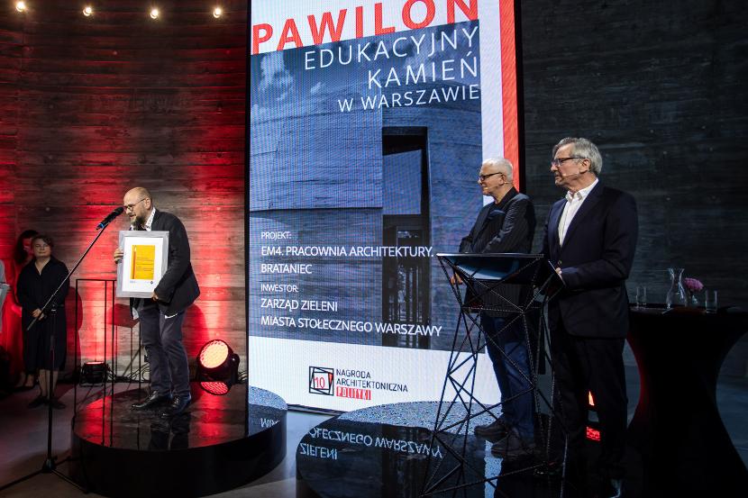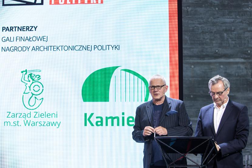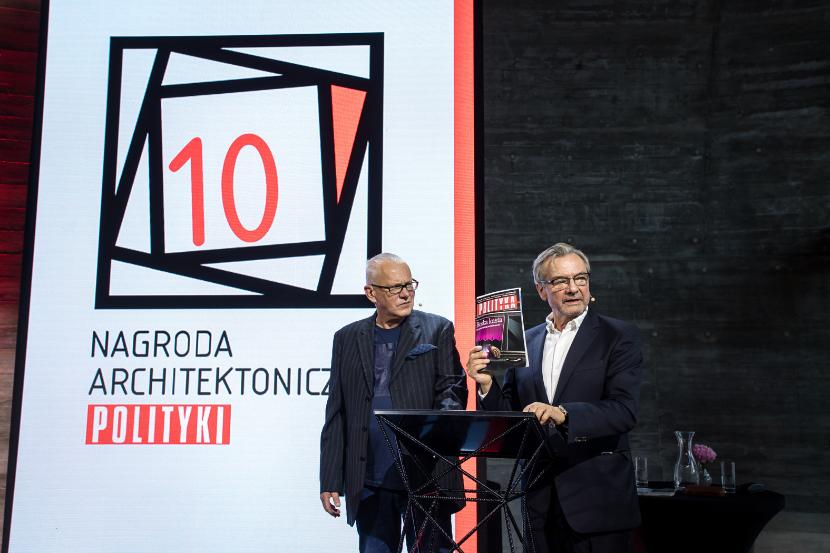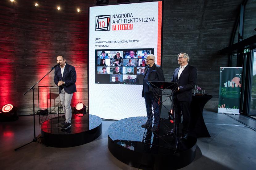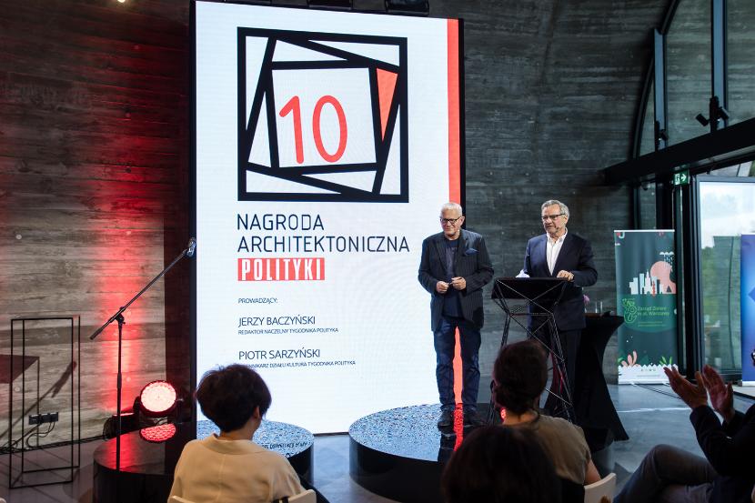 Gala Nagród Architektonicznych POLITYKI, którą tradycyjnie poprowadzili redaktor naczelny Jerzy Baczyński oraz ich pomysłodawca Piotr Sarzyński, była w tym roku szczególna z kilku powodów. Po pierwsze, świętowaliśmy 10-lecie istnienia, można więc powiedzieć, że z wieku dziecięcego wkraczamy powoli w wiek młodzieńczy. Po drugie, spotkaliśmy się po rocznej, spowodowanej pandemią przerwie. Wprawdzie także w zeszłym roku wręczyliśmy nasze wyróżnienia, ale niestety wszystko odbywało się wówczas zdalnie i korespondencyjnie. Teraz ponownie mogliśmy się zobaczyć, porozmawiać, powspominać minione edycje, choć oczywiście wszystko to w wymaganym sanitarnym reżimie. Po drugie, uroczystość odbyła się w Pawilonie Edukacyjnym „Kamień”, który urzekł nas i na miejsce spotkania wybraliśmy go jeszcze na początku roku, po czym po kilku miesiącach okazało się, że jury właśnie tej realizacji przyznało tegoroczne Grand Prix.