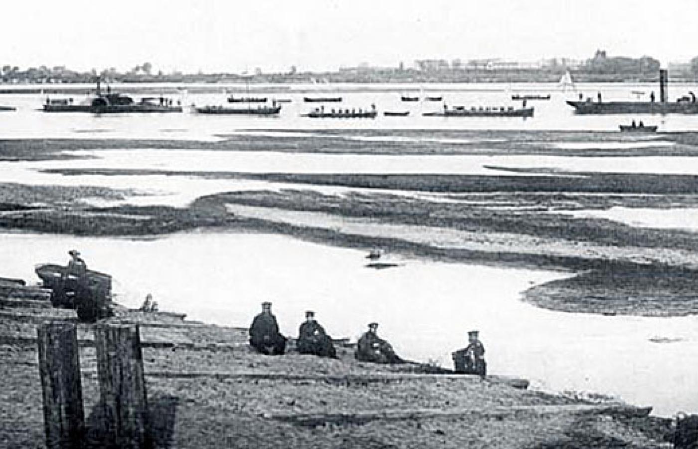 W pierwszych miesiącach 1863 r., krótko po wybuchu powstania, namiestnik Królestwa Polskiego wielki książę Konstantin Nikołajewicz Romanow (honorowo noszący stopień generała-admirała) zaproponował utworzenie na Wiśle flotylli złożonej z uzbrojonych statków parowych i żaglowo-wiosłowych. Jako obsadę tych jednostek przewidziano jedną z kompanii tzw. gwardiejskogo fłotskogo ekipaża. Formacja ta, której nazwę można tłumaczyć jako gwardyjską załogę okrętową, została utworzona 16 lutego 1810 r. Jej zadaniem była ochrona przepraw rzecznych i mostów dla wojsk lądowych oraz zaopatrywanie armii drogami wodnymi. Uczestniczyła w tej roli m.in. na Wiśle podczas kampanii 1813 i 1831 r.