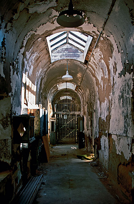 Modelowe stało się ogromne więzienie stanowe w Filadelfii z celami wyposażonymi w małe warsztaty stolarskie, tkackie bądź przynajmniej w kołowrotki. Skazaniec, przekraczając bramę, miał zakładany na głowę czarny kaptur i w ten sposób – pozbawiony nawet szansy zorientowania się gdzie jest prowadzony – trafiał do swego miejsca odosobnienia, którego nie opuszczał, aż skończył się czas trwania kary. W jej trakcie nie przysługiwało mu prawo do odwiedzin, a nawet do otrzymywania jakichkolwiek wieści zza murów.