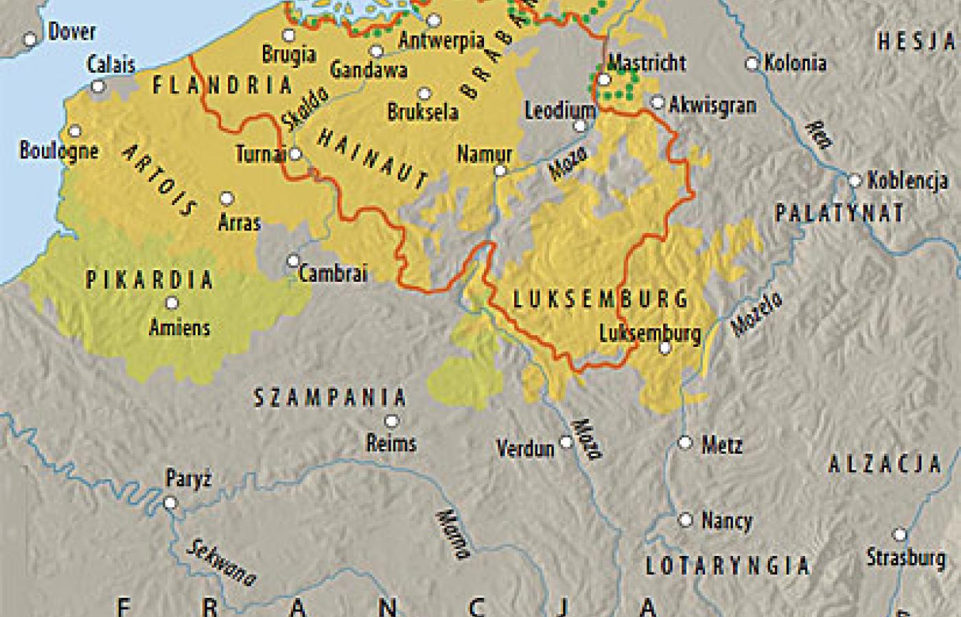 Pierwocin współczesnej Belgii próżno by szukać na mapach politycznych. Lepiej popatrzeć na dzieła dawnych mistrzów, których rzetelny realizm pozwala niemal dotknąć średniowiecznej rzeczywistości. Ze słynnego płótna Jana van Eycka spogląda na nas włoskie małżeństwo Arnolfinich. Mistrz portretował ich w 1434 r., nie ruszając się z rodzinnej Brugii. Gdzie, jak nie w gospodarczym sercu północy, mieli osiedlać się przedstawiciele lombardzkich domów handlowych i banków?