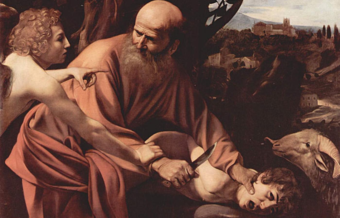 Abraham uniósł nóż, by poderżnąć gardło swego jedynego, długo oczekiwanego syna Izaaka. W ostatnim momencie anioł powstrzymał go, podsuwając na ofiarę baranka. Abraham zdał egzamin z wierności i oddania Bogu, decydując się na ten akt największego poświęcenia, dlatego miłosierny Pan pozwolił mu złożyć ofiarę zastępczą. Podobny motyw pojawia się w tradycji greckiej. Tam swoją córkę Ifigenię miał złożyć na ołtarzu Agamemnon, ponieważ Artemida uwięziła statki Achajów w drodze do Troi i jedynie ta ofiara mogła zapewnić im pomyślne wiatry. Ale i tym razem bogini zlitowała się, porywając dziewczynę tuż przed dopełnieniem aktu i podstawiając jako ofiarę młodą łanię.