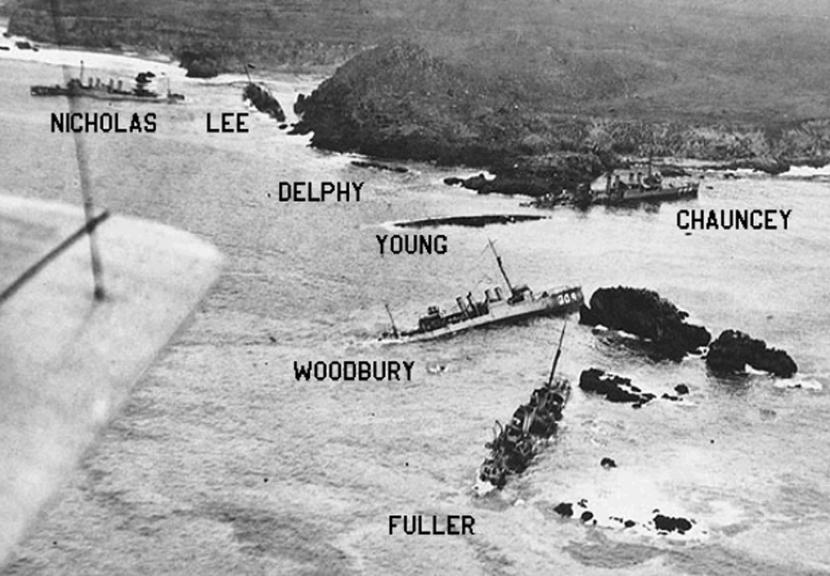 Dowódca eskadry, komandor Edward H. Watson, znajdował się na pokładzie flagowego USS Delphy, na którym w trudnych warunkach pogodowych prowadzono tzw. nawigację zliczeniową (ustalanie pozycji jednostki na podstawie kursu i szybkości wyznaczanej przez liczbę obrotów śruby).