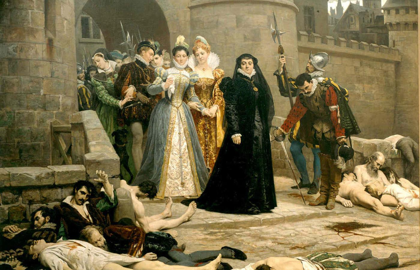 Jeszcze większa rzeź odbywała się w domach i na ulicach Paryża. Do tej pory nie jesteśmy pewni, jaki był w tym udział Katarzyny Medycejskiej. Już wcześniej podejrzewana była przez dwór i lud, a potem przez historyków, o stosowanie trucizn i matactwa polityczne. To ona stworzyła Szwadron Podfruwajek wyciągający podczas amorów sekrety dworskie i polityczne. Krytycy Katarzyny sądzą, w zgodzie z czarną legendą, że diaboliczny plan wybicia protestantów we Francji miał przyczynić się do dobrych relacji z Hiszpanią i zagwarantować synom tron.
