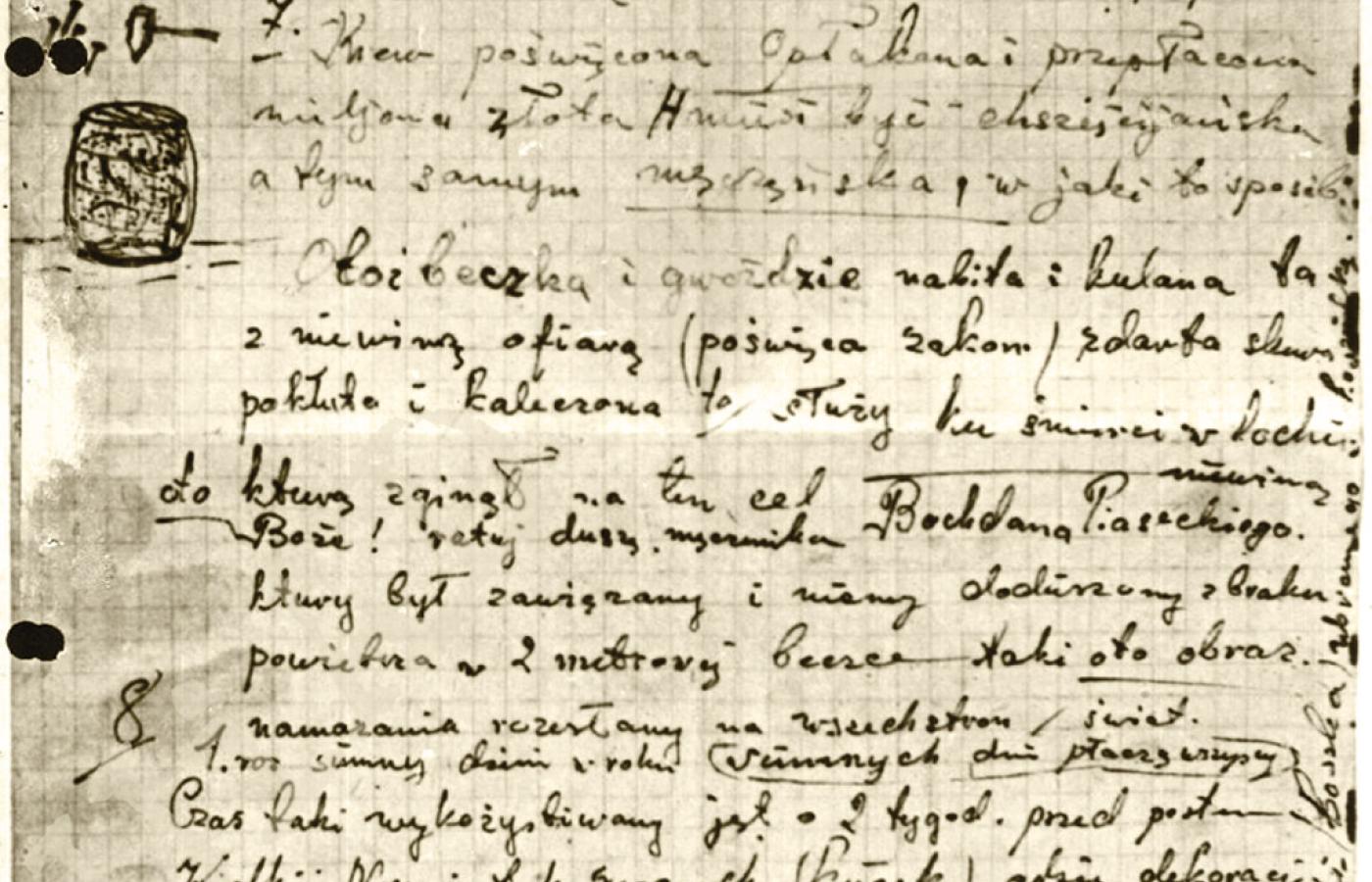 Z kolei „w dniu 19 października [1959 r.] otrzymaliśmy informacje, że do funkcjonariusza MO, pełniącego służbę przy placówce dyplomatycznej Wielkiej Brytanii w Warszawie, zwróciła się niejaka Trawkowska Barbara [...] która po otrzymaniu od niego zapewnienia dyskrecji, oświadczyła wprost, że wie, kto zamordował B. Piaseckiego. Po poinformowaniu go o powyższym w/w straciła natychmiast przytomność, a wezwany lekarz przewiózł ją na pogotowie, skąd następnie skierowana została do szpitala dla psychicznie chorych w Pruszkowie. Tam też udał się nasz pracownik, który w obecności lekarza przeprowadził z nią rozmowę. W toku tej rozmowy okazało się, że Trawkowska jest istotnie psychicznie chora i w związku z tym żadnych jej oświadczeń nie można traktować poważnie. W tym stanie rzeczy proponuję dalszego prowadzenia sprawy zaniechać”.