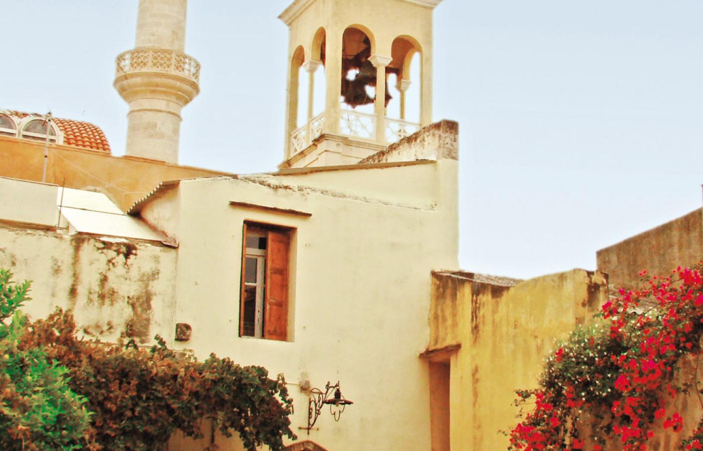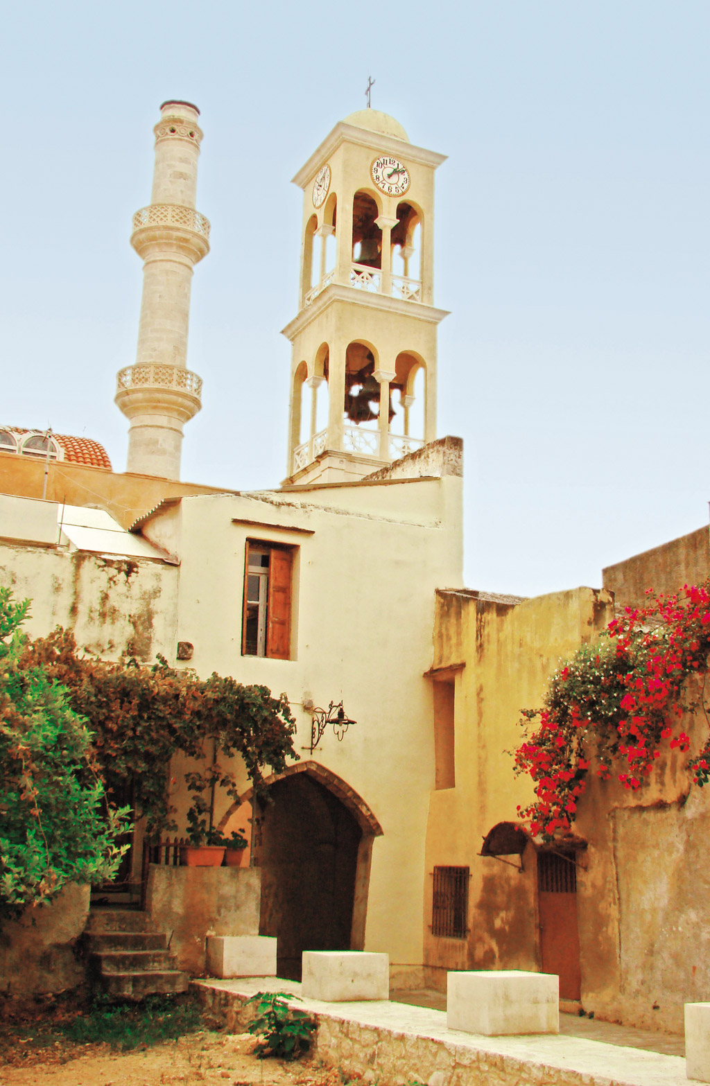 W Chanii na Krecie stoi kościół św. Mikołaja, zbudowany w średniowieczu przez dominikanów z Wenecji. Turcy w XVII w., przerabiając go na główny meczet miasta, zostawili wieżę, lecz dołożyli potężny minaret z dwoma balkonami. W 1918 r. prawosławni Grecy odzyskali budowlę, ale minaret pozostawili. Taką symbiozę dzwonnicy i minaretu nieczęsto się widzi, nawet jeśli ogranicza się ona tylko do architektury.