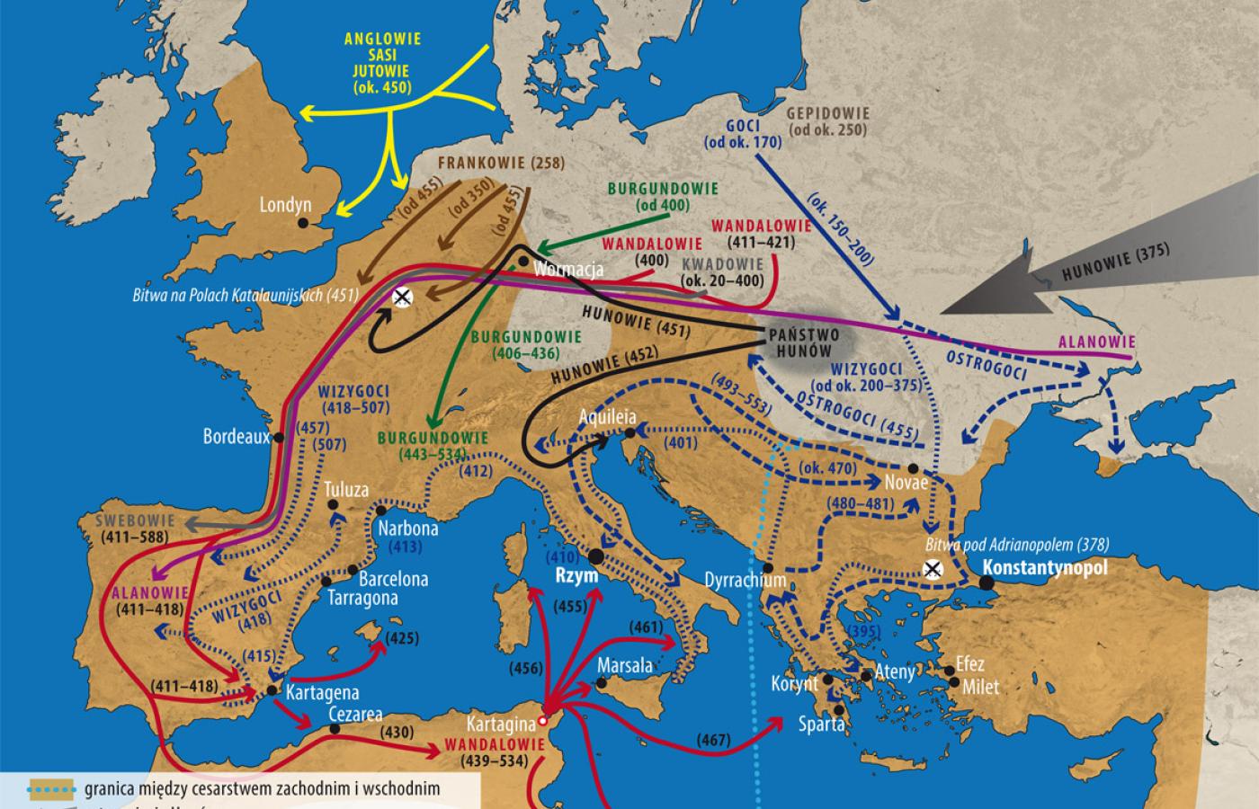 Na przełomie er Europa dzieliła się na świat śródziemnomorski oraz resztę – cywilizacja sięgała ufortyfikowanej granicy Imperium Romanum, natomiast na wschód od Renu i na północ od Dunaju żyli barbarzyńscy Germanie. Tysiąc lat później to już nie południe grało pierwsze skrzypce. Większość współczesnych państw europejskich wywodzi swój rodowód od tworów politycznych, które pojawiły się właśnie w I tys., nic dziwnego, że za główny impuls do ich powstania uważano wielką wędrówkę ludów.