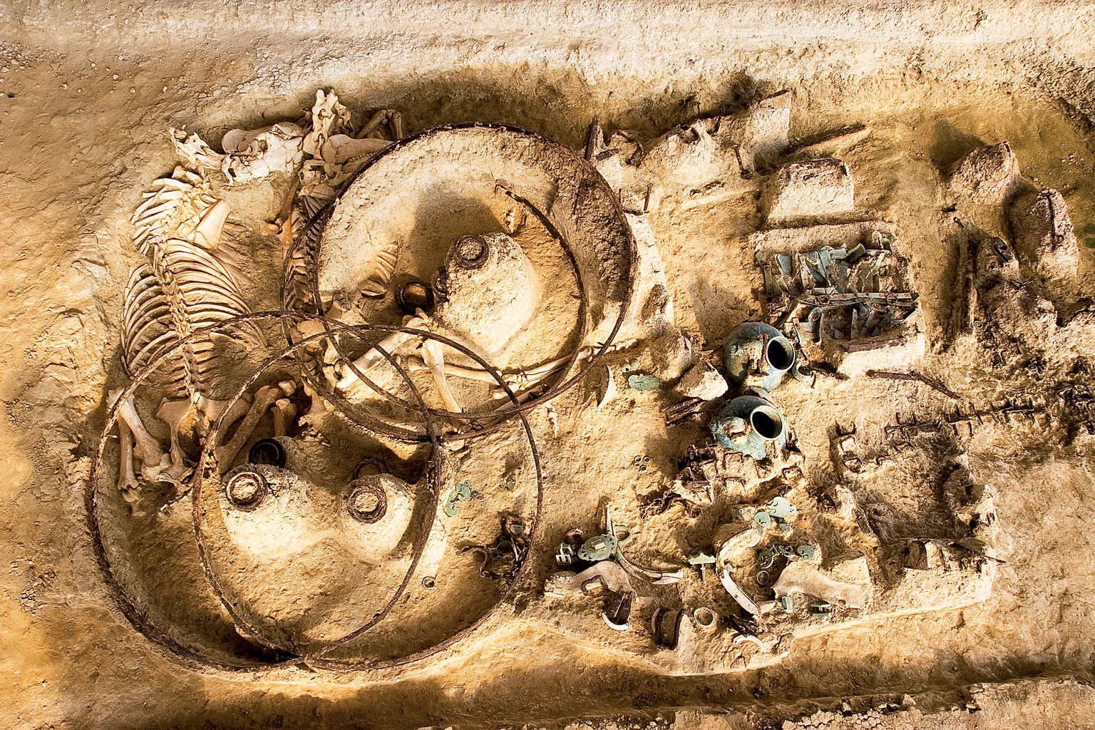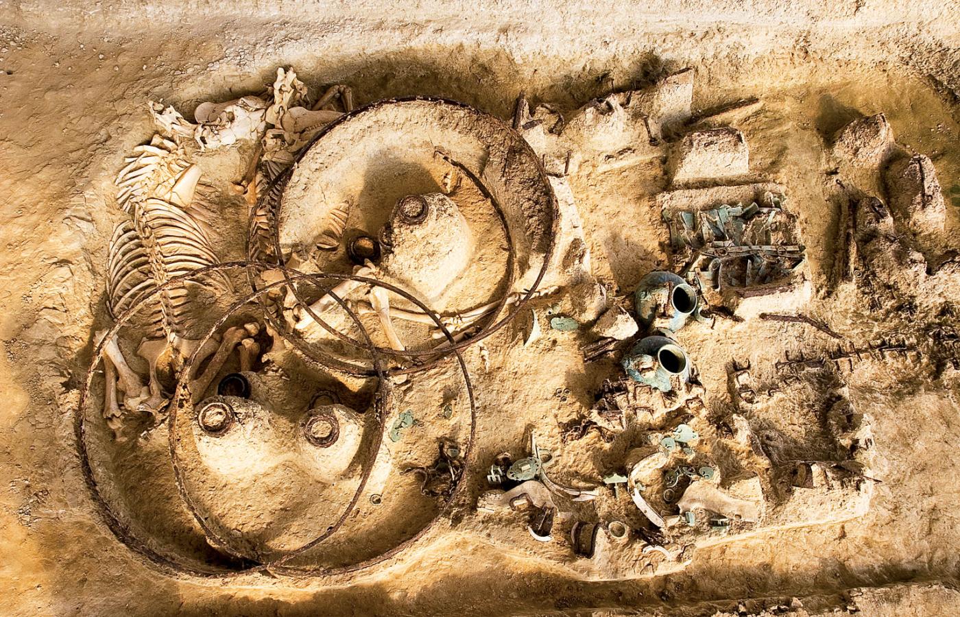 Ciało zmarłego na przełomie II i I w. p.n.e. Celta leżało na dwukołowym wozie z brązowymi okuciami, dekorowanymi kolorową emalią. Na szyi miał złoty naszyjnik, szaty spinała ozdobna zapinka, a obok leżały nożyce, brzytwa oraz intencjonalnie złamana pochwa miecza. W komnacie grobowej były też kości czterech koni. Pochówek zaskoczył badaczy, bo pochodzi z czasów, gdy inhumacja i zabieranie ze sobą do grobu wozu prawie wyszły już z mody. Ale to właśnie dzięki temu odkrycie w Warcq jest tak obiecujące. – Znalezisko jest wyjątkowe, bo zachowały się drewniane części wozu, zazwyczaj niszczone w stosie pogrzebowym – tłumaczy badacz wozów celtyckich dr Martin Schönfelder z Römisch-Germanisches Zentralmuseum w Mainz. – Dzięki temu będzie można się pokusić o pełną rekonstrukcję wozu. Poza tym mamy też możliwość przebadania kości końskich pod kątem genetycznym oraz morfologicznym, co być może pozwoli ustalić, czy były to zwierzęta zaprzęgowe.