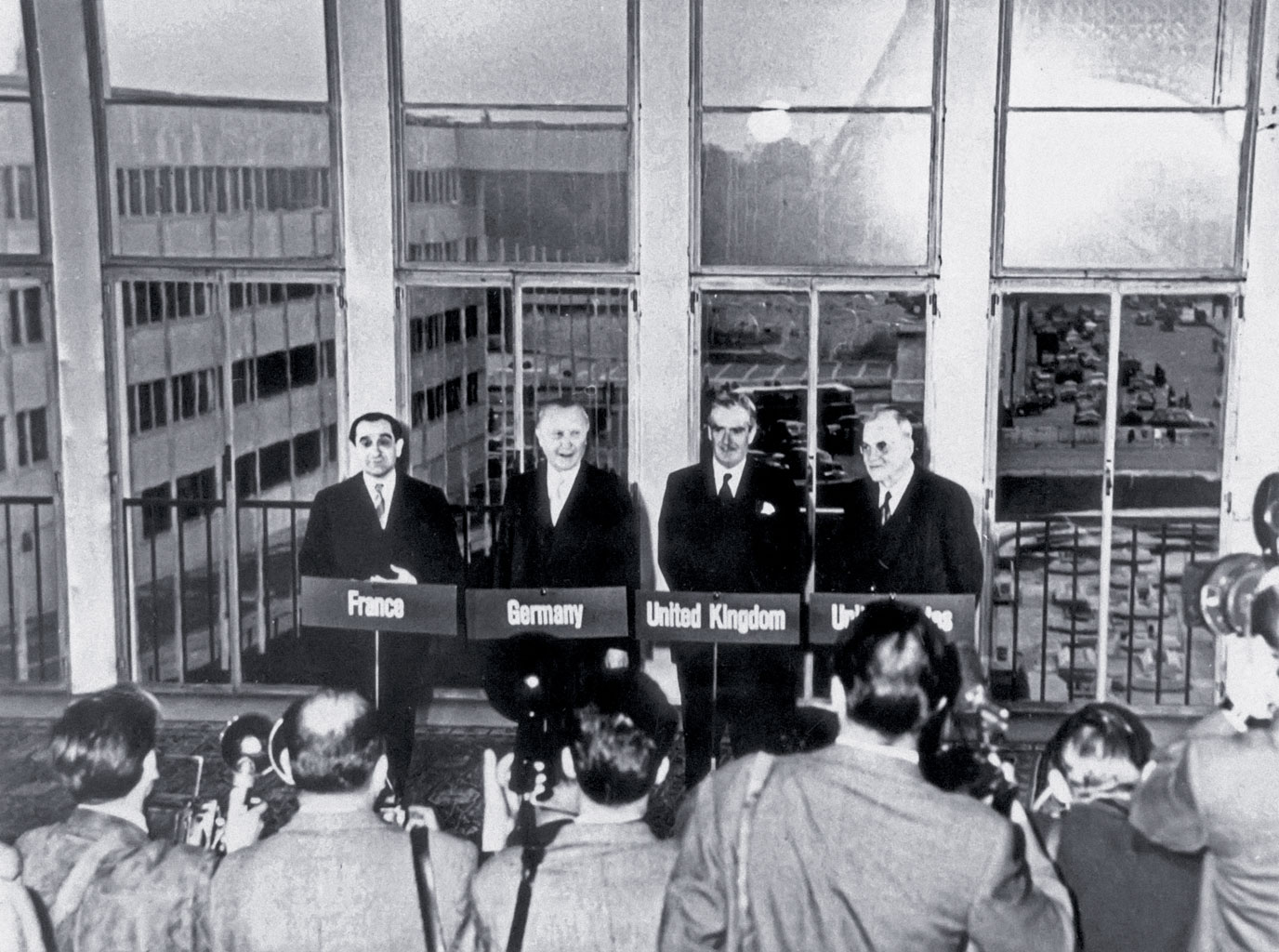 Brytyjski minister spraw zagranicznych Anthony Eden rozesłał 28 września 1954 r. zaproszenia do rządów ośmiu państw: USA, Kanady, Belgii, Holandii, Luksemburga oraz Włoch i Niemiec, na spotkanie konsultacyjne w sprawie przyszłości Niemiec i procedury ich pełnej integracji z Zachodem. Problematyce nadano wysoką rangę i wydarzenia toczyły się bardzo szybko. Do spotkania doszło już 3 października. Zgodzono się na nim, że alianci z czasów wojny zadeklarują zakończenie okupacji Niemiec i uznanie ich za pełnoprawnego uczestnika życia międzynarodowego. Niemcy dostaną prawo przystąpienia do NATO i utworzenia narodowej armii w sile do 500 tys. żołnierzy. Zostały zobligowane do uznania Karty Narodów Zjednoczonych. Ustalono również, że niemiecki wysiłek militarny będzie ograniczony, gdyż nie będzie mógł obejmować broni atomowej, biologicznej i chemicznej.