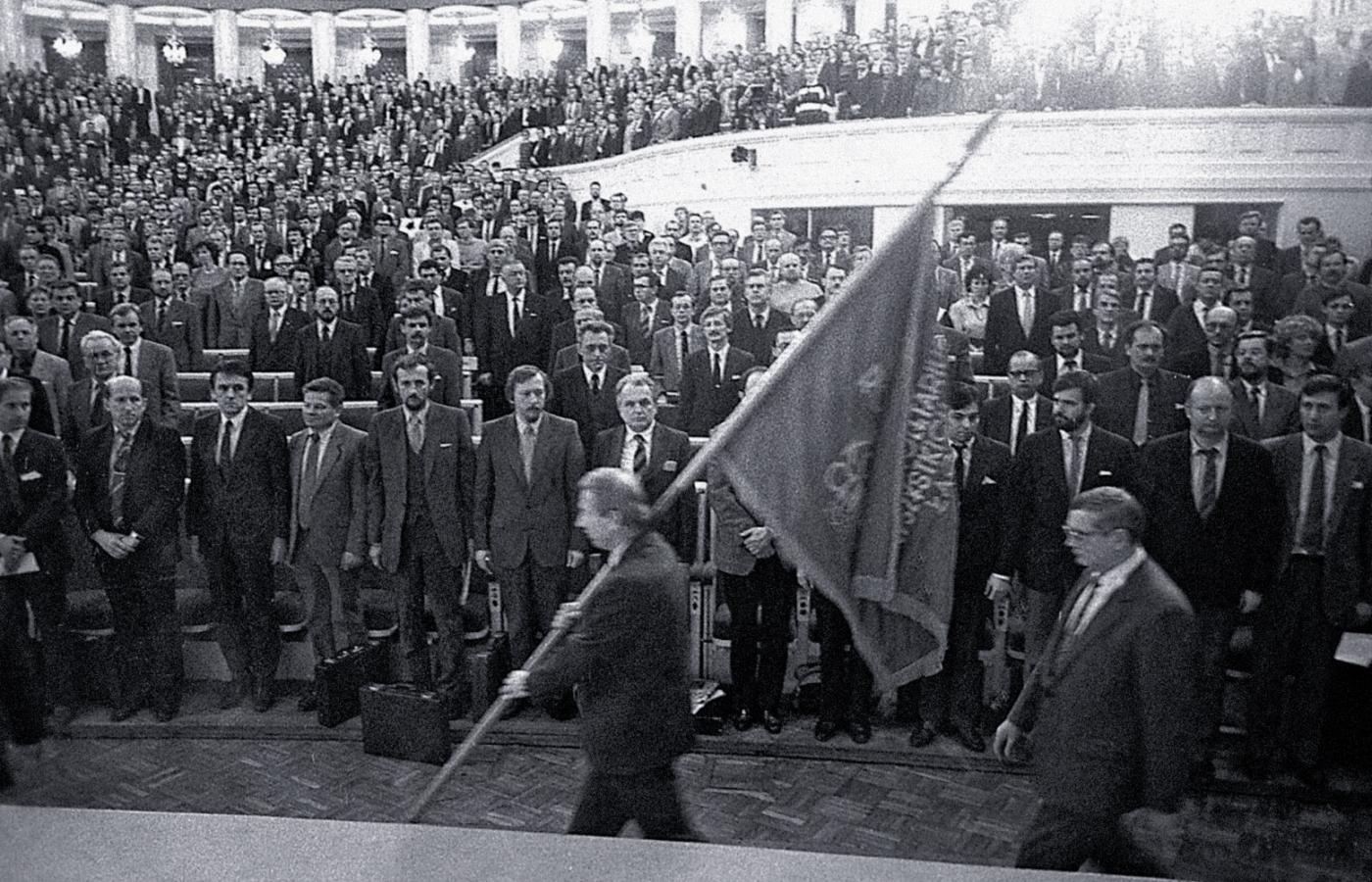 Karty na przyszłość były już rozdane. Rakowski jeszcze na chwilę, o godz. 1.30, już 29 stycznia, reaktywował XI Zjazd PZPR, by pożegnać sztandar. „Poczekajmy jeszcze, co powie historia o tej partii…” – ciągnął wyraźnie przemęczony. Apelował, by „nie znęcać się nad PZPR”. Gdy padło słynne potem „Sztandar wyprowadzić” – wynoszono go majestatycznie, delegaci podchwycili ton „Międzynarodówki”, który Sala Kongresowa usłyszała wtedy ostatni raz. Partia ledwie przekroczyła czterdziestkę, chociaż tylko lekko starsza od filmowego Karwowskiego, nikomu już nie była potrzebna.