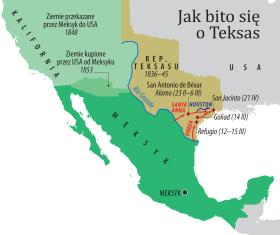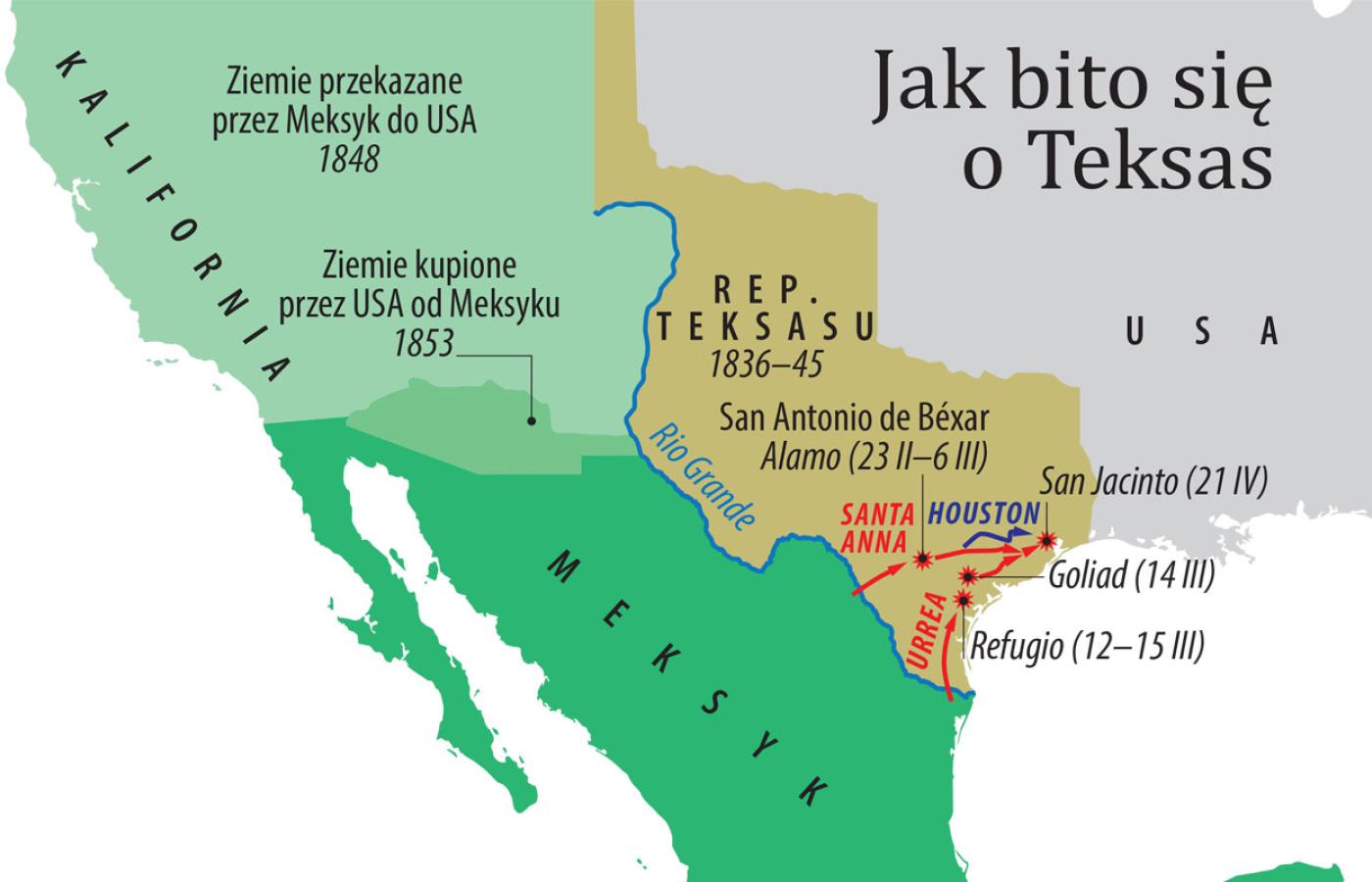 Biedny Meksyk! Tak daleko od Boga i tak blisko Stanów Zjednoczonych – słowa dyktatora tego kraju gen. Porfirio Diaza oddają specyficzne stosunki obu krajów. Gdy w 1803 r. Napoleon odsprzedał Stanom Zjednoczonym obszar tzw. Luizjany (POLITYKA 23/15), młode państwo amerykańskie zaczęło graniczyć z ówczesnymi koloniami Hiszpanii. Początkowo na pogranicze zapuszczali się wyłącznie traperzy i podróżnicy. Jednak gdy po krwawej wojnie Meksyk zrzucił w 1821 r. zwierzchność Hiszpanii, żyzne obszary Teksasu stały się magnesem przyciągającym osadników.