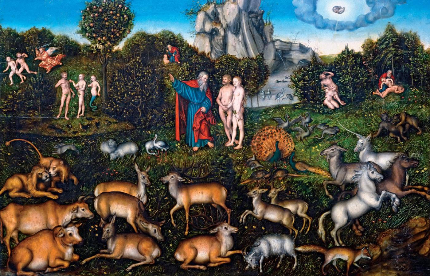 Obraz Edenu z Księgi Rodzaju odwoływał się do starej tradycji i pobrzmiewają w nim marzenia ludów pustyni, którym nieustannie zagrażała susza. Według wielu starożytnych mitów ogród otoczony murami, z drzewem lub fontanną w centrum oraz z czterema rzekami, które z niego wypływają, jest archetypem Raju na ziemi. W zaraniu świata człowiek żył w owej mitycznej oazie w pokoju i harmonii z naturą, wolny od cierpienia i niedoskonałości. Chrześcijańscy teolodzy spekulowali później, ile czasu spędzili w tym szczęśliwym miejscu pierwsi rodzice. Zasadniczo zgadzano się, że niewiele, gdyż Ewa – jak wszystkie kobiety słaba na rozumie i podatna na szatańskie podszepty – łatwo uległa wężowi. Możliwe, że sięgnęła po owoc już tego samego dnia, kiedy została stworzona.