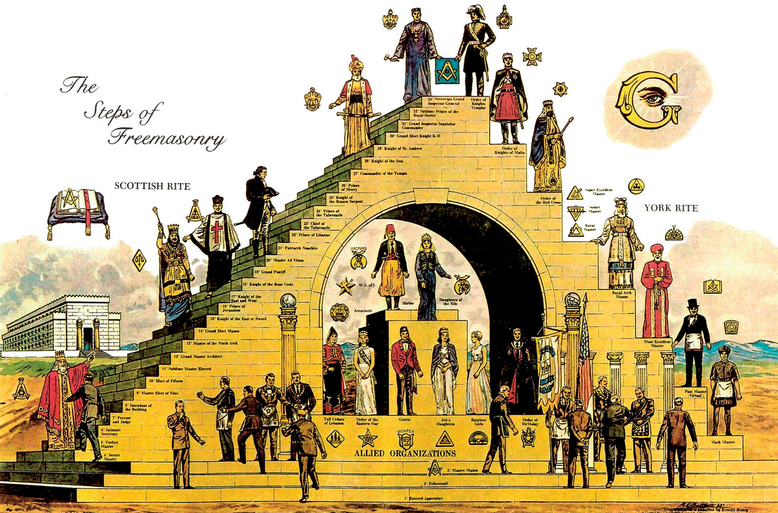 Skąd się jednak wzięło dziwne zrzeszenie przypominające zakon, jego symbolika, inicjacje z „profana” na „ucznia”, cele, kolejne stopnie wtajemniczenia? Legendarne początki masonerii sytuowano m.in. w czasach budowy Pierwszej Świątyni w Jerozolimie i w stowarzyszeniach muratorów-kamieniarzy. Masoni będą pielęgnować mit o budowie świątyni Salomona, podczas której miał zostać zamordowany przez czeladników architekt Hiram Abif, co odczytujący dosłownie ten przekaz „uważali (…) za historię początków zakonu” wolnomularskiego, pisał W. Kirk MacNulty. W rzeczywistości mit ten nie zgadza się z przekazem biblijnym. Czytamy bowiem w 1 Księdze Królewskiej: „Hiram zrobił ponadto kadzie, łopatki i kropielnice” (1 Krl,7,40). Oznaczało to, że żył i dokończył dzieła budowy wspaniałej świątyni.