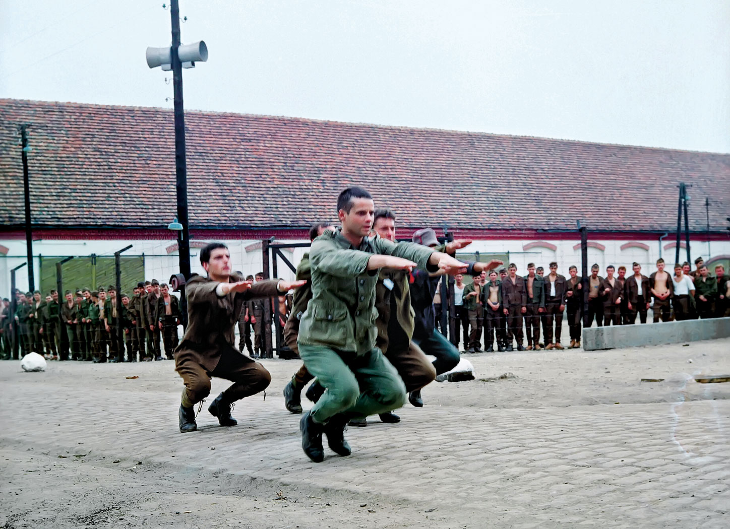 Druga dyscyplina: kolarstwo. Ale jak w nazistowskim obozie można ścigać się na rowerach? Potrzeba jest matką wynalazków. Klecą stacjonarny rower, czyli „dwa szpitalne taboreciki spojone rowerową ramą pochodzącą ze starego, zdezelowanego »Pucha«, który był służbowym środkiem lokomocji Rogera [Viriona]” – wspomni Niewiadomski. Francuz, Jugosłowianin, Holender, Norweg, Polak (ten zmacha się tak bardzo, że po zakończeniu konkurencji padnie, a z jego oka wypłynie strużka krwi)... Virion przyprowadza pojedynczo „chorych” olimpijczyków do lazaretu. Każdy ma pięć minut, musi pedałować z całych sił, wygrywa ten, kto „zajedzie” najdalej. Belg – to on bije wszelkie jenieckie rekordy i zostaje złotym medalistą. Polacy poza podium.