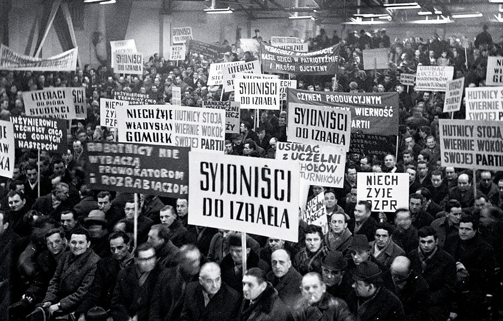 Wróg wykreowany. „Zza wszystkiego, co złe na świecie, zza wrogów wszelkiej maści, wychyla się twarz Żyda zwanego syjonistą” – pisał o peerelowskiej propagandzie 1968 r. Michał Głowiński. Od czerwca 1967 r., kiedy w prasie po raz pierwszy zaczęto posługiwać się pojęciami „syjonizm” i „syjonistyczna agresja”, zdołała ona wyprodukować szczególny splot motywów. Kreując obraz wroga, zdyskontowała wszystkie dotychczasowe doświadczenia; zarówno własne, jak i też wypracowane przez przedwojenną nacjonalistyczną prawicę. Stalinowscy dygnitarze i agenci imperializmu okazali się działać w interesie międzynarodowej finansjery żydowskiej, a wszystko to połączono z obsesją zachodnioniemieckiego rewanżyzmu. Dokonano niespotykanej w ciągu poprzednich kilkunastu lat mobilizacji sił i przypuszczono atak na wyimaginowaną postać, mającą uosabiać całe zagrażające systemowi zło.