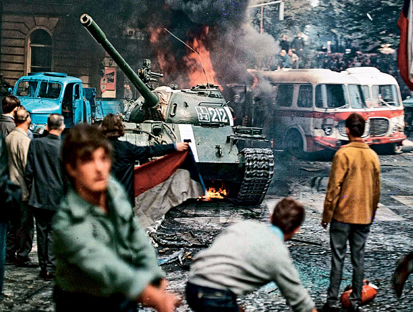 Po południu 20 sierpnia 1968 r. w Pradze rozpoczęło się posiedzenie KC, przygotowujące zbliżający się zjazd partii komunistycznej. Wedle relacji dało się wyczuć, że obrady nie toczyły się zwyczajnie. Grupa, która za kilka godzin miała się okazać kolaborantami, grała na zwłokę, przedłużając czas obrad. W tym samym czasie sowieccy agenci w Pradze zaczęli już działać: prezes agencji prasowej polecił wyłączyć dalekopisy nadawcze, jeden z szefów radiofonii zadbał o odłączenie głównych nadajników, wiceminister spraw wewnętrznych i szef służby bezpieczeństwa miasta Pragi zwoływali alarmowo do komendy wybranych funkcjonariuszy. Na lotnisku w Pradze poprosiły o lądowanie z przyczyn technicznych niezapowiedziane samoloty z Moskwy i Lwowa, które później okazały się centrami dowodzenia. O godz. 1.30 grupa komandosów z tych samolotów razem z „pracownikami Aerofłotu”, którzy dużą grupą przyjechali tego dnia do pracy i zostali aż do nocy, opanowała praskie lotnisko, na którym zaczęły lądować samoloty transportowe. Kolumny aut niezwłocznie udawały się w kierunku centrum.