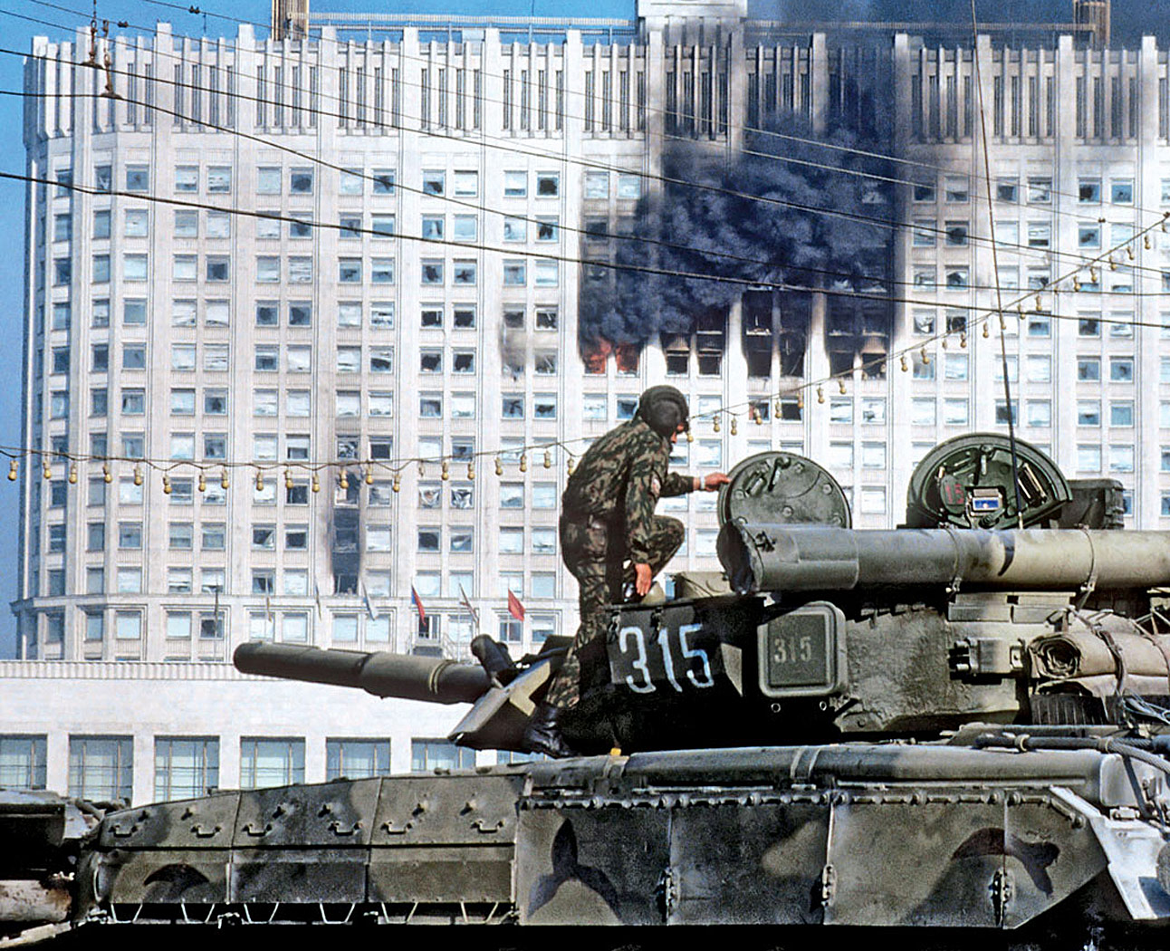 Po rozpoczęciu okupacji gmachu w krótkim czasie w jego okolice napłynęły tysiące ludzi, w tym wielu z bronią w ręku. Obwołali się Obrońcami Białego Domu. Przeprowadzali na dziedzińcach ćwiczenia wojskowe i wiecowali, nawołując do wskrzeszenia ZSRR. Okupacja Białego Domu, otoczonego kilkoma pierścieniami zasieków, trwała od 21 września do 4 października 1993 r. Wtedy nastąpił tragiczny finał konfliktu pierwszego rosyjskiego prezydenta z większą częścią władzy ustawodawczej republiki, odziedziczonej po ZSRR.