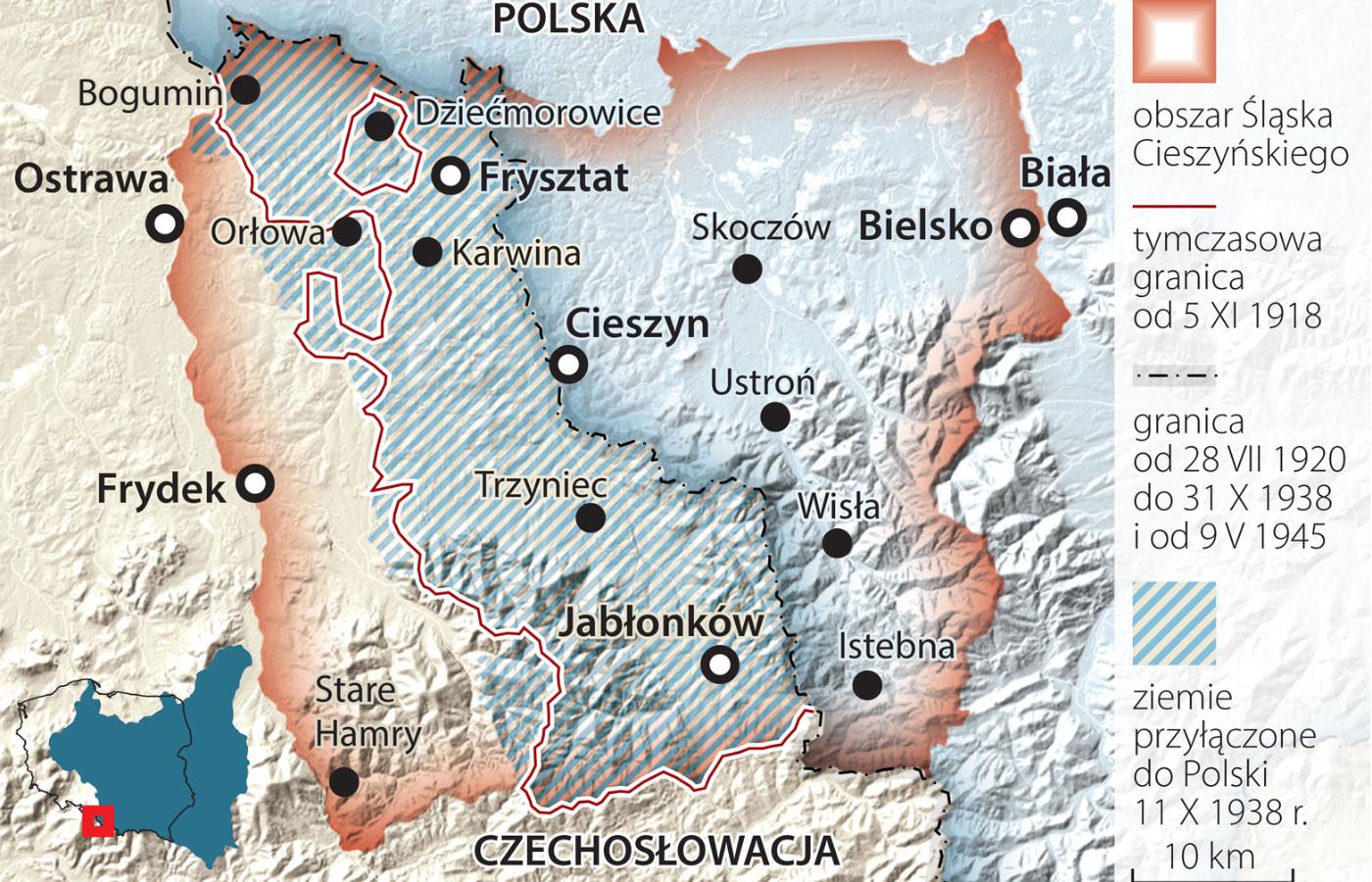 Konflikt o Śląsk Cieszyński wybuchł na przełomie października i listopada 1918 r. u zarania niepodległości obu państw. Lokalnym organom władzy w Ostrawie i Cieszynie udało się 5 listopada tymczasowo podzielić sporny region z zastrzeżeniem, że ostatecznego podziału dokonają rządy w Pradze i Warszawie. Polskie decyzje o poborze do wojska i przeprowadzeniu wyborów do sejmu 26 stycznia 1919 r., również w części Śląska Cieszyńskiego tymczasowo podlegającej władzy polskiej, Czesi uznali za złamanie umowy i politykę faktów dokonanych. Pod takim pretekstem 23 stycznia 1919 r. wojska czeskie zaatakowały, docierając aż do linii rzeki Wisły. W wyniku interwencji mocarstw ententy musiały jednak się cofnąć i oddać większość zajętego terytorium. Początkowo próbowano zaproponować obu stronom różne warianty podziału, jednak wszystkie zostały odrzucone zarówno przez Polskę, jak i Czechosłowację. Nie powiodły się także negocjacje dwustronne, więc Pokojowa Konferencja Paryska zdecydowała o przeprowadzeniu na Śląsku Cieszyńskim plebiscytu. Niestety, w wyniku brutalnej kampanii plebiscytowej, w której obie strony sięgnęły po przemoc, broń i zamachy bombowe, głosowanie nie doszło do skutku. Latem 1920 r. w bardzo niesprzyjającej dla Polski sytuacji, gdy bolszewicy prowadzili ofensywę na Warszawę, sprawę Śląska Cieszyńskiego oddano pod arbitraż mocarstw. Ustalono granicę polsko-czechosłowacką tak, jak przebiega ona dzisiaj.