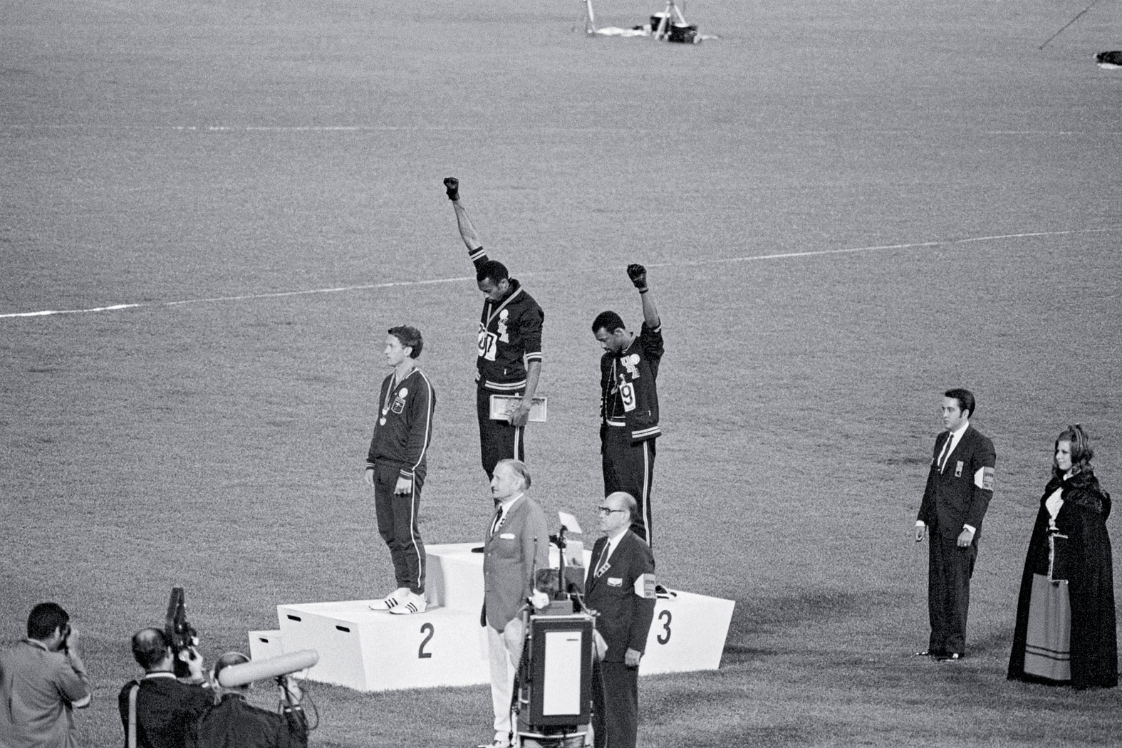 Wieczorem 16 października 1968 r. 60 tys. widzów na trybunach Uniwersyteckiego Stadionu Olimpijskiego w Meksyku buczało, gwizdało i wyciągało ręce ze skierowanymi w dół kciukami. Właśnie odbyła się dekoracja zwycięzców biegu na 200 m. Brązowy medal zdobył Amerykanin John Carlos z wynikiem 20,10 sek. O cztery setne sekundy wyprzedził go nagrodzony srebrem Australijczyk Peter Norman. Złoty medal ozdobił pierś Tommiego Smitha, rodaka Carlosa, który wynikiem 19,83 sek. ustanowił nowy rekord świata, pobity dopiero 11 lat później. Sportowcy, przed chwilą oklaskiwani, wzbudzili gniew stadionu, gdy zwrócili się w stronę masztów z flagami, by wysłuchać amerykańskiego hymnu. Smith z Carlosem – obaj czarnoskórzy – pochylili głowy i wznieśli zaciśnięte pięści w czarnych rękawiczkach, wykonując powszechnie znany salut black power, czarnej siły. Nie było tak dobitnej manifestacji politycznej w ciągu siedmiu dekad nowożytnych igrzysk olimpijskich.
