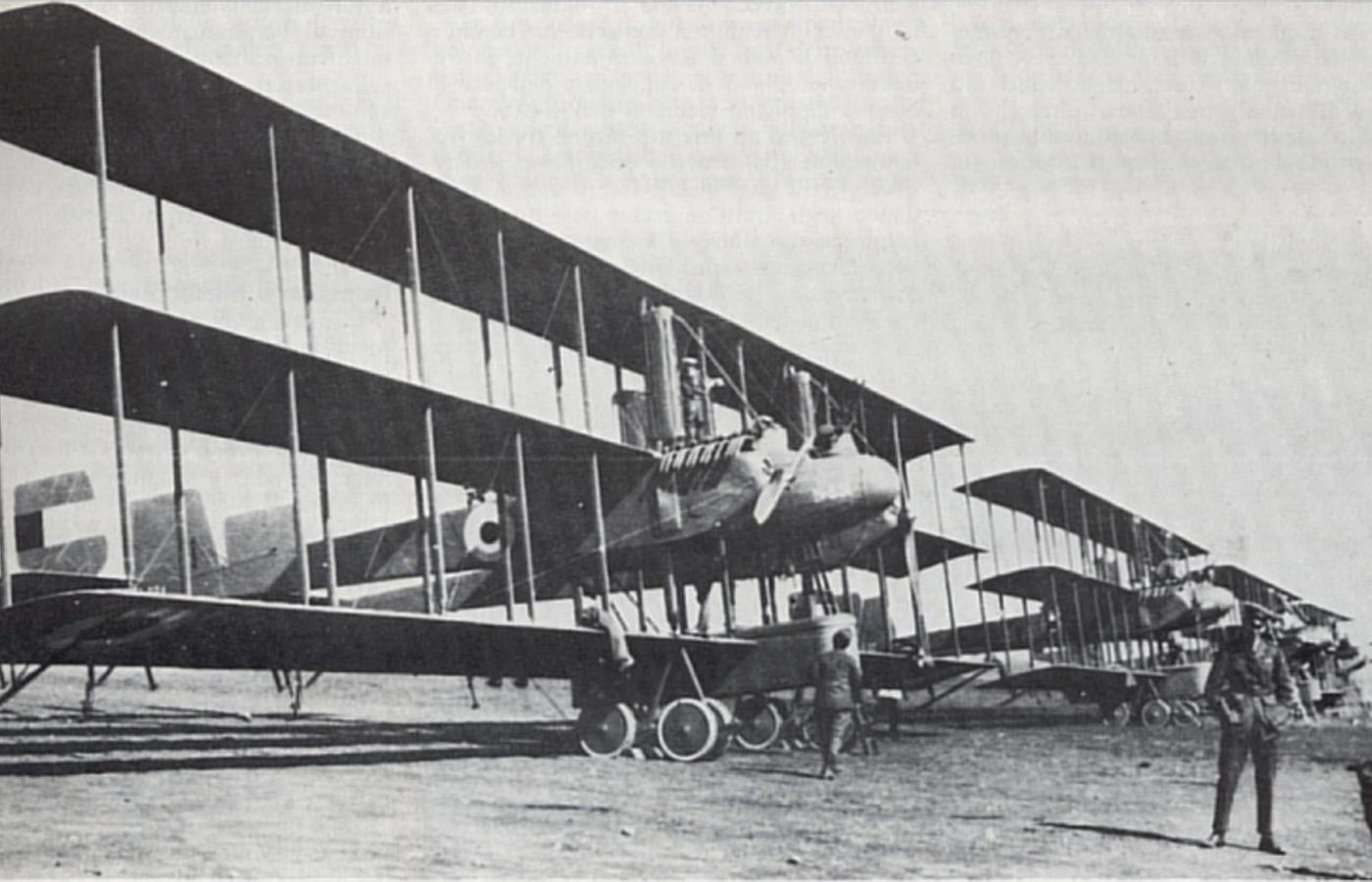 Początkowo wykorzystywano do bombardowania lekkie maszyny jednosilnikowe o ograniczonym zasięgu i udźwigu. Wprowadzono więc do służby samoloty dwu-, później czterosilnikowe. Zwłaszcza Niemcy, po spektakularnych porażkach swoich zeppelinów (ale to dopiero od 1917 r.), zaczęli budować maszyny przypominające latające stodoły, wyposażone np. w stanowiska strzeleckie w gondolach na górnym płacie – cóż to musiało być za przeżycie odbyć trwający 10 godzin lot w otwartej kabinie, w temperaturze -20 st., w czymś w rodzaju kajaka zawieszonego na wysokości 4 tys. m.