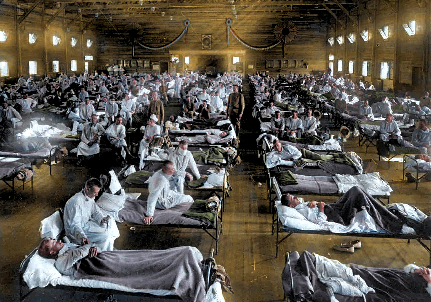 Wiosną 1918 r. w kilku miejscach na świecie zauważono szybko rozszerzającą się epidemię nowego typu grypy z rozwijającym się niemal natychmiast zapaleniem płuc. Chorzy sinieli, dostawali krwotoku z ust i uszu, dusili się własną krwią i umierali w ciągu doby od wystąpienia pierwszych objawów. Choroba najpierw dziesiątkowała Wielką Brytanię i USA. W kwietniu i maju praktycznie zamarło życie w północno-wschodnich stanach, najbardziej dotknięte były Boston i Filadelfia. W Anglii Manchester, ale i w Londynie umierało po 100–200 osób dziennie.