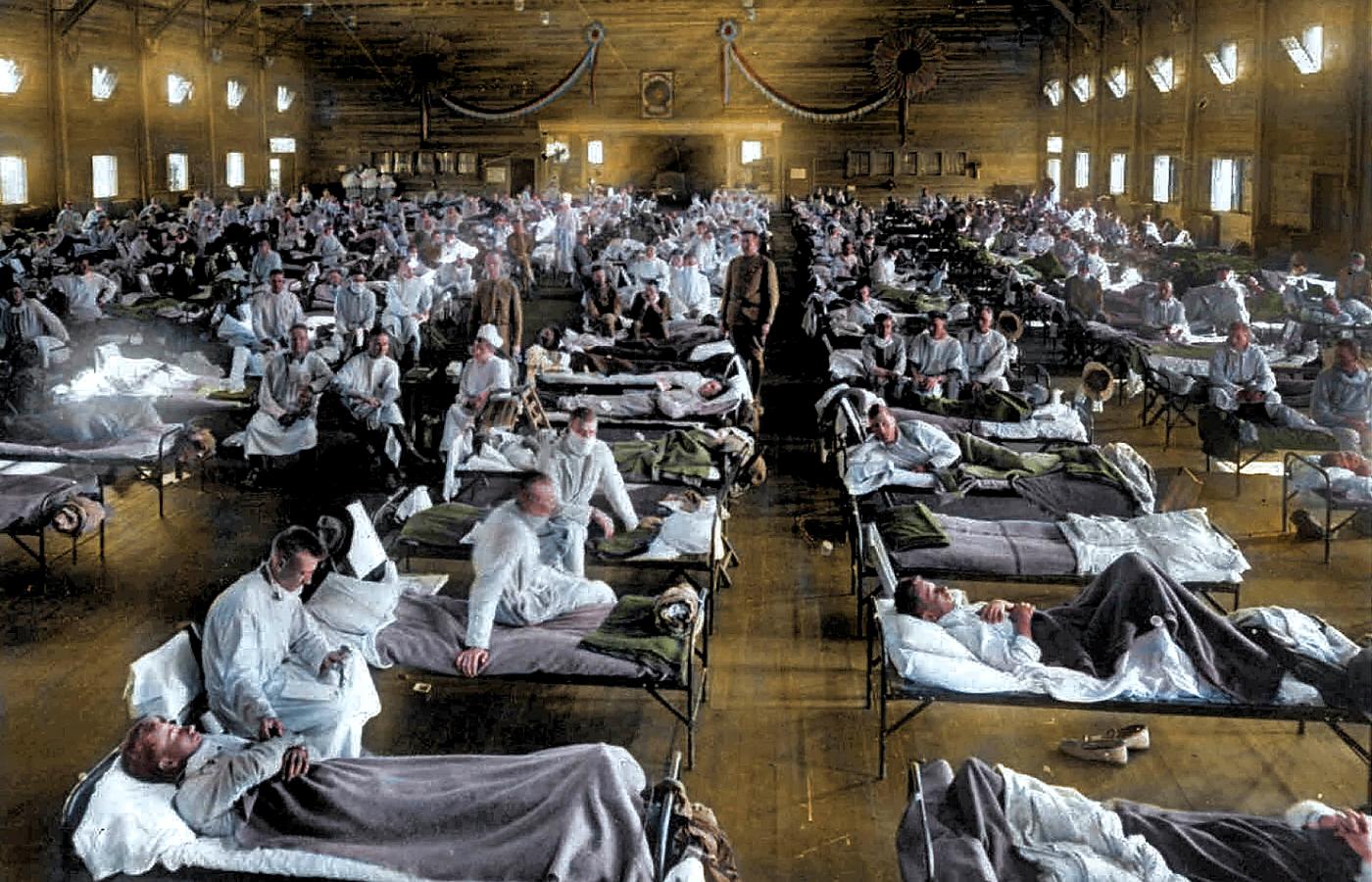 Przypadek z 4 marca 1918 r. w Kansas jest najlepiej opisany, bo prowadzono solidną dokumentację medyczną. Niektórzy historycy wskazują tymczasem na ognisko w wiedeńskim szpitalu na przełomie 1916 i 1917 r., inni – na Lipsk lub Królewiec. Część uważa, że „rosyjski katar” z lat 1889–1993, który zabił milion ludzi, wywołał ten sam wirus (notabene niemieccy lekarze opisali przypadek infekcji w obozie jenieckim w Czersku koło Warszawy w 1918 r.). Epidemiolodzy do dziś analizują historię statku „Leviathan”, który 7 października przywiózł do portu Brest we Francji 9 tys. żołnierzy amerykańskich. W trakcie ośmiodniowego rejsu zmarło stu z nich, a po dobiciu na ląd co najmniej 2 tys. nie trafiło na front, ale do szpitali, gdzie szybko zmarli. Pozostali rozwozili wirusa po kraju, a później dzięki wynalazkowi kolei żelaznych – po całej Europie Zachodniej. Jesienią 1918 r. wojsko w USA zatrudniało stolarzy (do zbijania trumien) i grabarzy (służby komunalne nie nadążały z pochówkami).