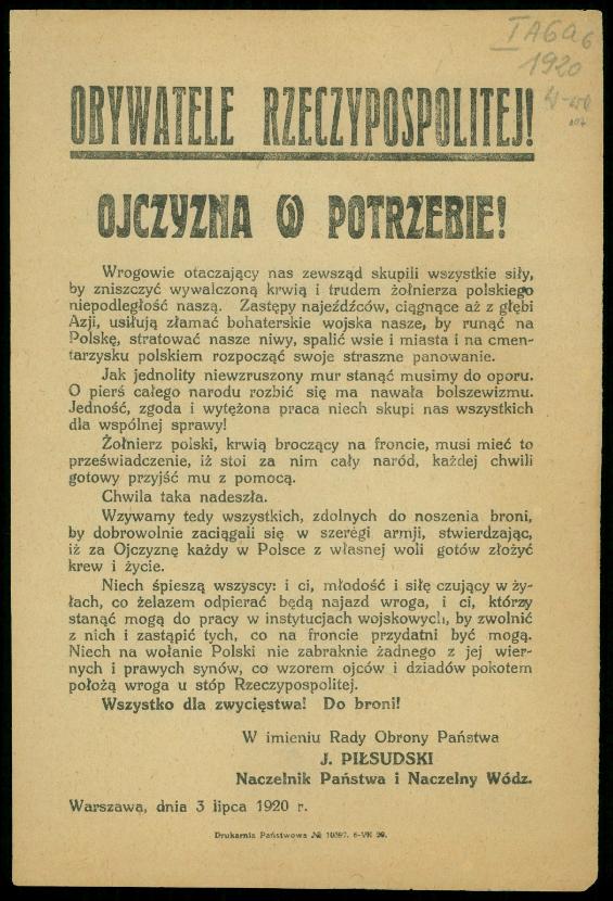 [„W obronie zagrożonej ojczyzny. Głos artystów polskich”, „Rzeczpospolita” nr 24/1920]