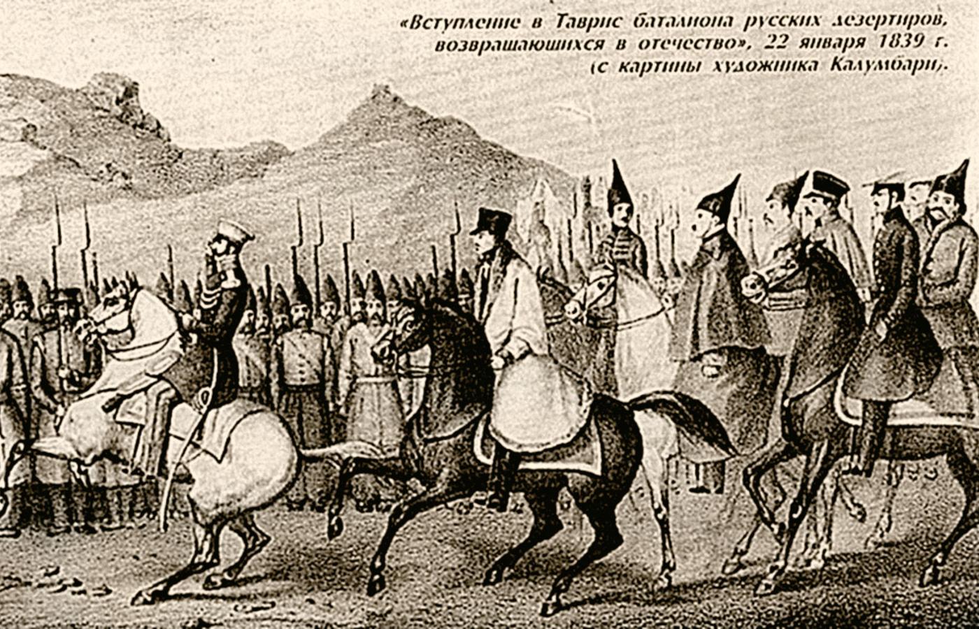 Dezercje Polaków, ale i Rosjan z armii carskiej do Persji doprowadziły do powstania tam egzotycznego batalionu polsko-rosyjskiej gwardii szacha Fath Alego z dynastii Kadżarów. Persowie nazywali ten oddział Bagaderan (Doborowi) lub Jengi Muslem (Nowi muzułmanie), choć żaden Polak nie porzucił swej wiary. Polacy pod dowództwem kpt. Daczenki tworzyli w batalionie jedną kompanię, a okresowo dwie (łącznie 200 ludzi). Rozkazy wydawano w mieszance języków polskiego i ukraińskiego. Batalionem dowodził rosyjski podoficer Makincew nazywany Samson Chan. Koszary mieściły się niedaleko cesarskiego pałacu. Z czasem żołnierze osiedleni zostali w wojskowych koloniach wschodniego Azerbejdżanu: Tebrizie, Salmazah, Choje, Morhaje, a także w innych miejscach.